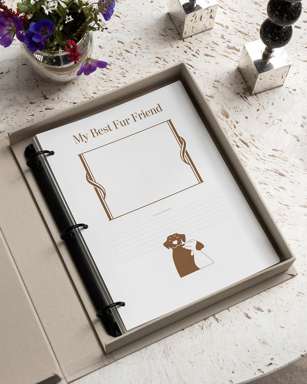 Ontdek het eerste fotoalbum gewijd aan het gekoesterde leven van uw viervoetige beste vriend. 'A Dog's Life' heeft een prachtige beige doekomslag met witte tekst. Binnenin vindt u 30 pagina's van hoogwaardig wit fotopapier, waardoor u uw foto's gemakkelijk kunt bevestigen. Het biedt ruimte voor twee 10x15 cm foto's op elke pagina, met ruimte voor persoonlijke notities eronder. Houd er echter rekening mee dat het album maximaal 40 pagina's kan bevatten. De grootte van het fotopapier is 28x21 cm.