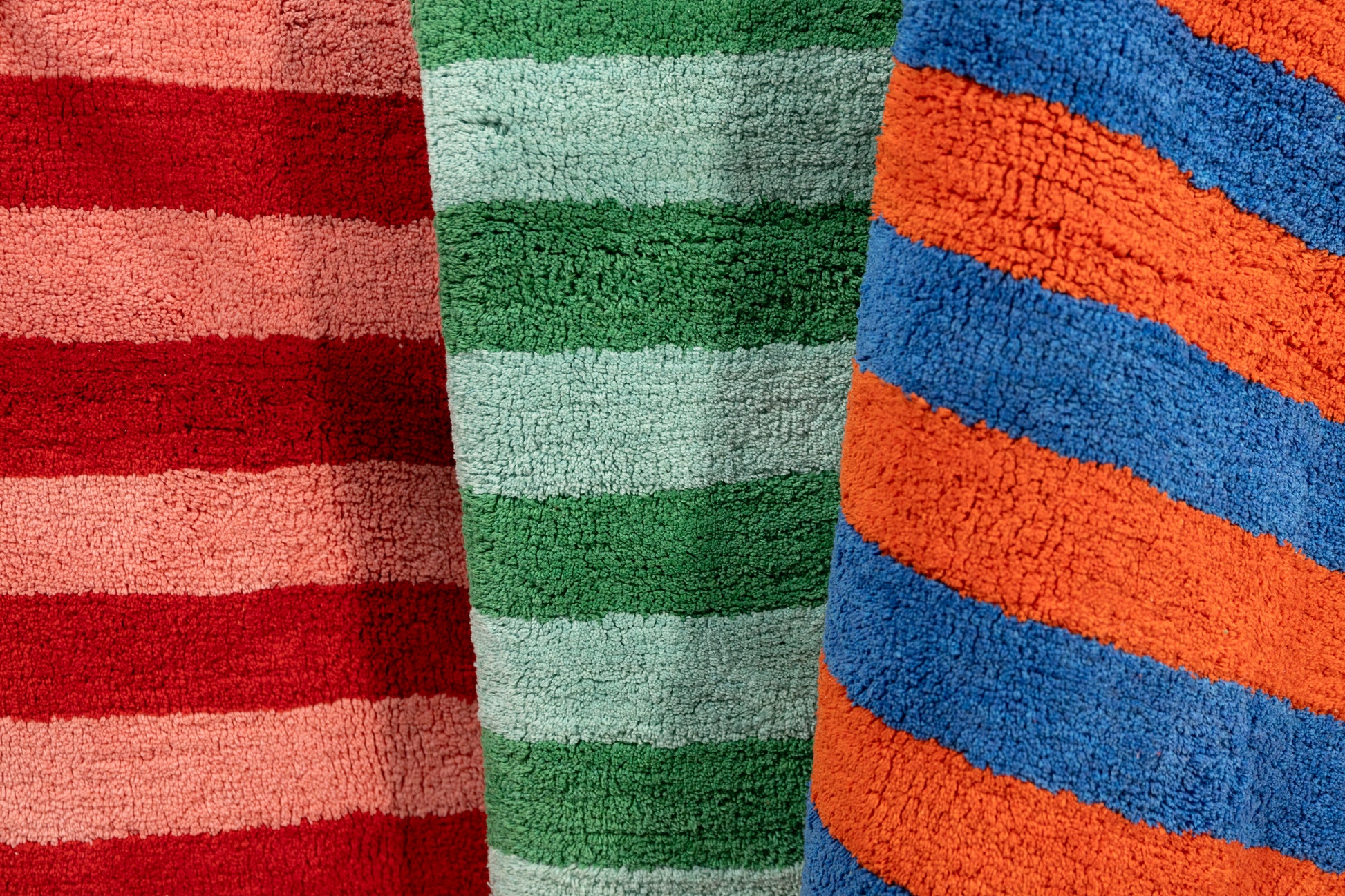 Breng kleur en gezelligheid in je badkamer met deze speelse badmat. Het vrolijke strepenpatroon geeft je ruimte een frisse uitstraling. De mat is 50 x 80 cm groot en gemaakt van zacht katoen, dat heerlijk absorberend is na een ontspannend bad of een verkwikkende douche. Een kleurrijke must-have voor je badkamer!