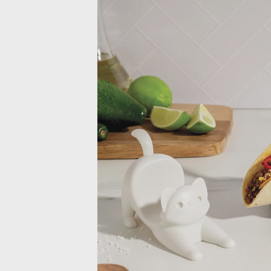 De Catos tacohouders van Ototo brengen een flinke dosis plezier naar taco night. Deze set van drie houders in de vorm van uitrekkende katten combineert speels design met praktische steun: taco's blijven netjes rechtop staan, vullen gaat zonder knoeien en de tafel krijgt meteen een grappige touch. Ideaal voor harde of taco schelpen tijdens doordeweekse etentjes of feestjes.
