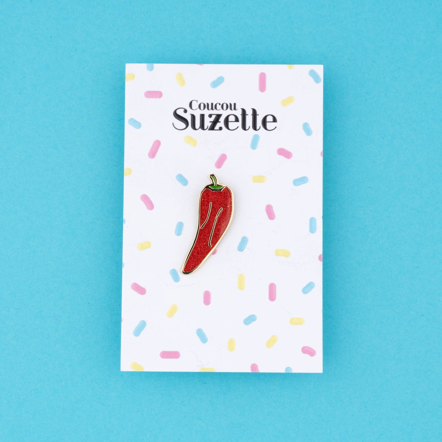 Deze schattige rode glitterende chilipeper brandt dan misschien niet in je keel, maar hij geeft wél meteen pit aan je outfit! Speld hem op de kraag van je shirt of aan het zakje van je spijkerjasje voor een muy caliente look.