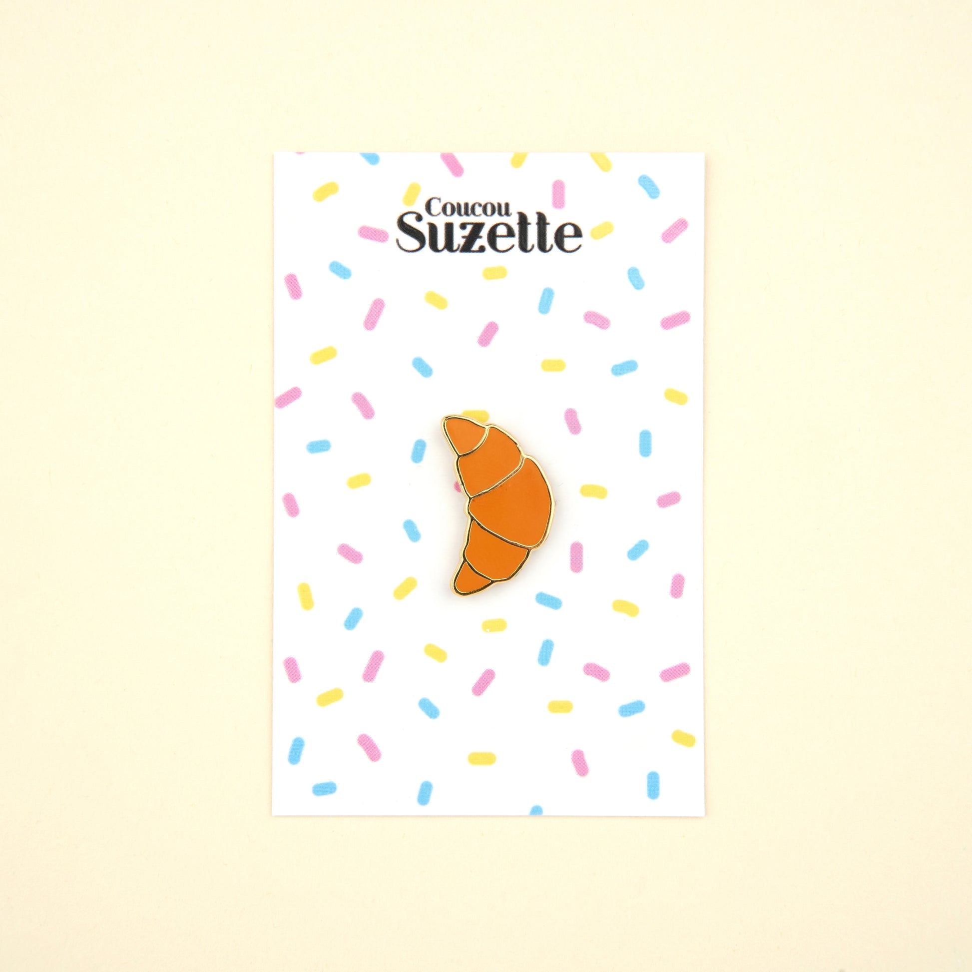 Een schattige croissant-pin met mooie gouden details die perfect past op elke jas, jurk, schouderband of tas.