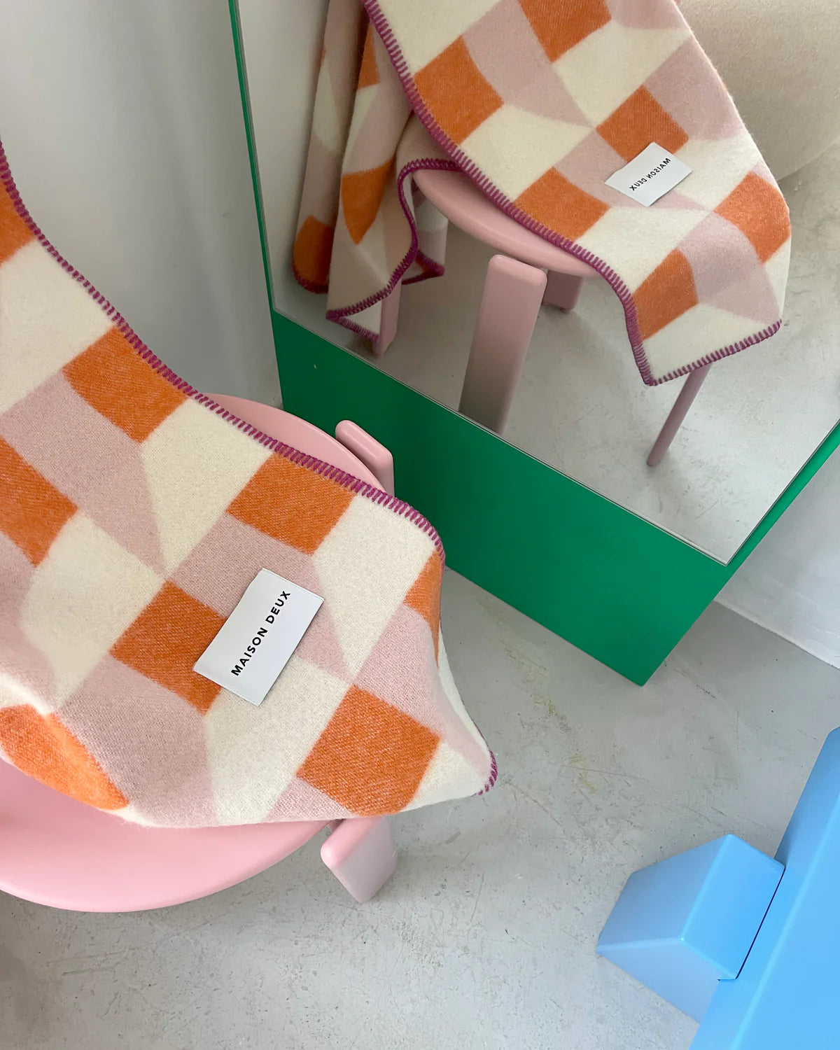 Het Kubussen Plaid is een prachtig jacquardgeweven plaid van 100% Nieuw-Zeelandse wol, afgewerkt met subtiele stiksels langs de randen. De dikke, zachte wol houdt je heerlijk warm, terwijl de omgekeerde print op de achterzijde zorgt voor een speels en stijlvol accent. Met een royale afmeting van 130 x 200 cm is dit plaid ideaal om samen onder te kruipen of om als eyecatcher over je bank of favoriete stoel te leggen.