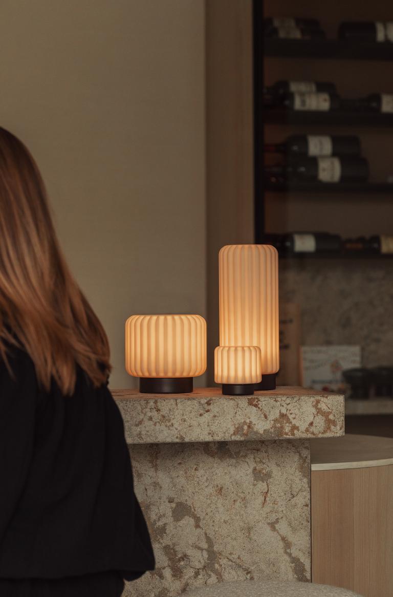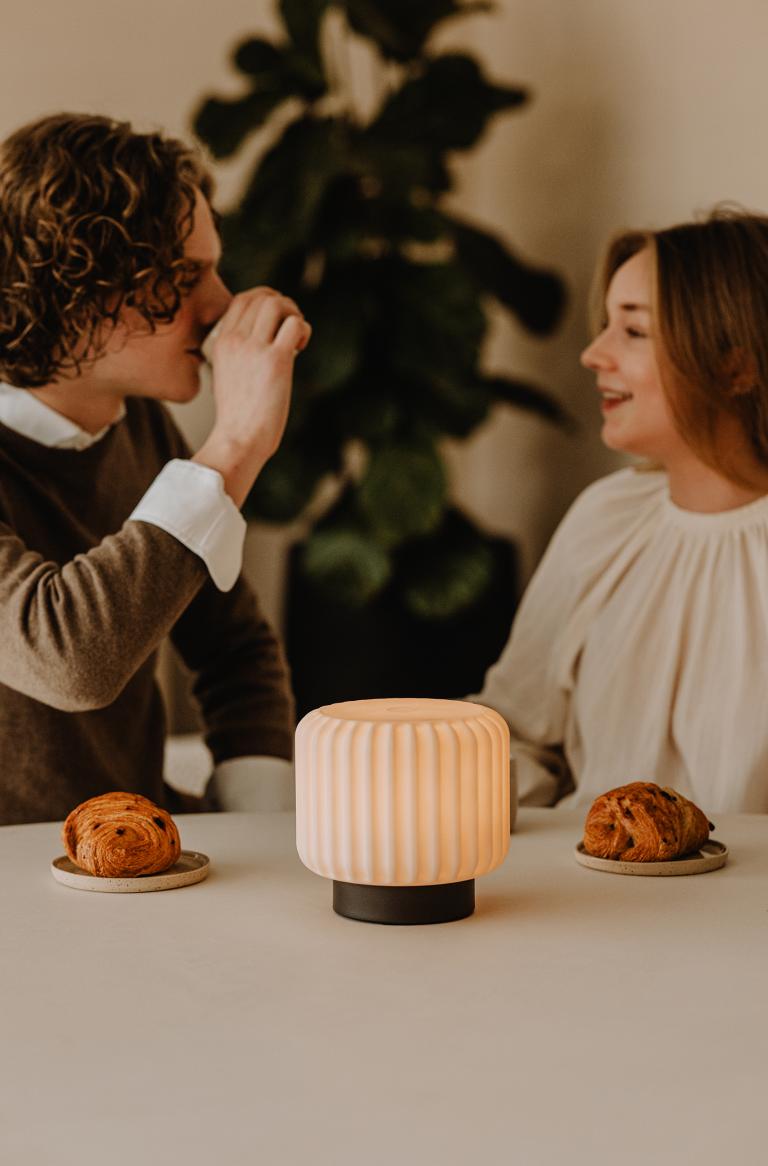 Het warme licht van deze lage Dentelles lampen creeërt meteen de perfecte sfeer voor stijlvol samenzijn. Gemaakt van gerecycled, milieuvriendelijk materiaal, is deze draadloze lamp geschikt voor zowel binnen als buitengebruik.