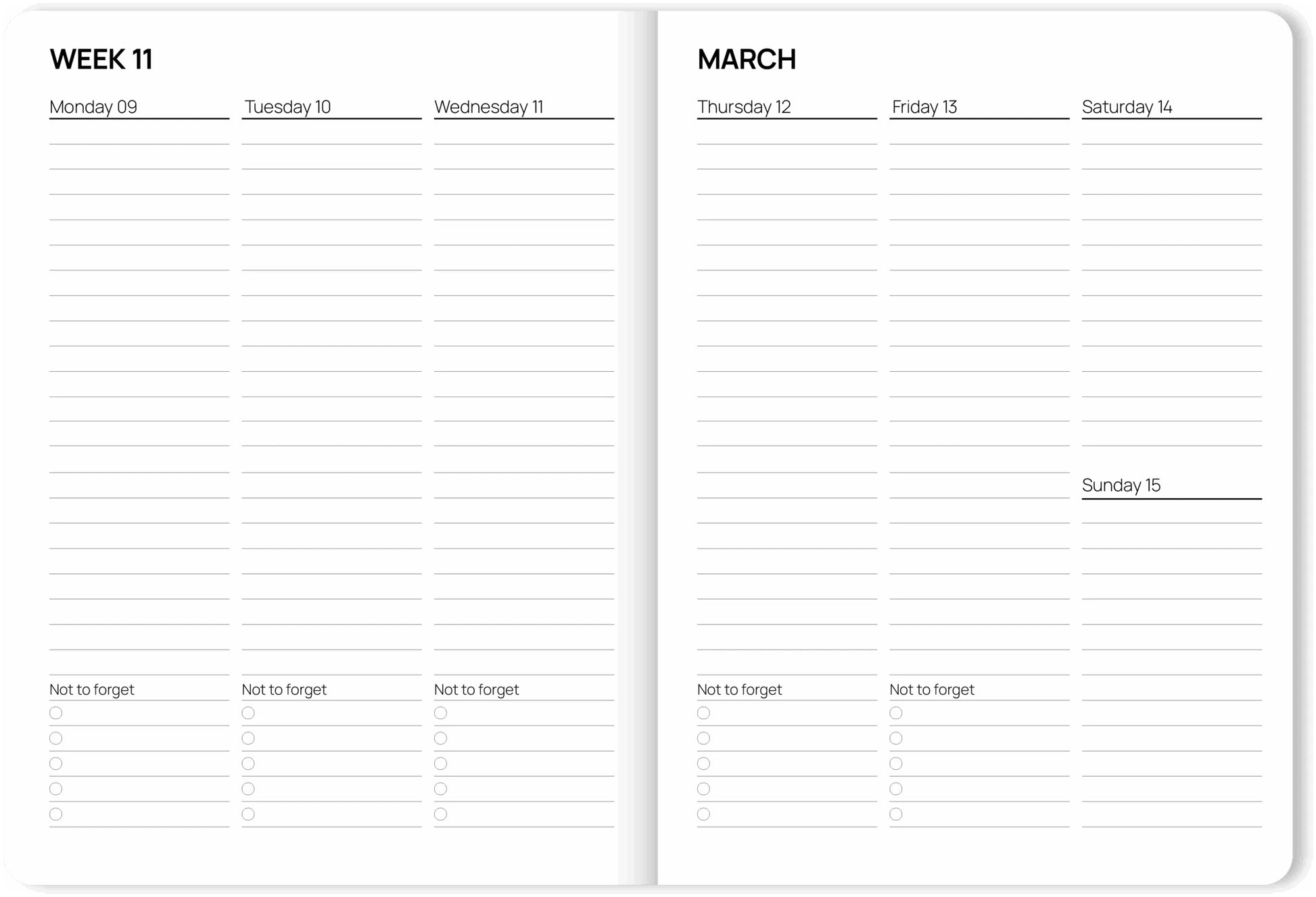 Ook handig: onderin is bij elke week extra ruimte vrijgelaten voor taken en notities. Dus geen gedoe meer met onleesbare krabbels maar duidelijke aantekeningen. En wat is er nou lekkerder dan met een mooie lege agenda nieuwe jaarplannen te maken? Laat 2026 maar beginnen, jij bent er klaar voor met een Fabrique agenda.