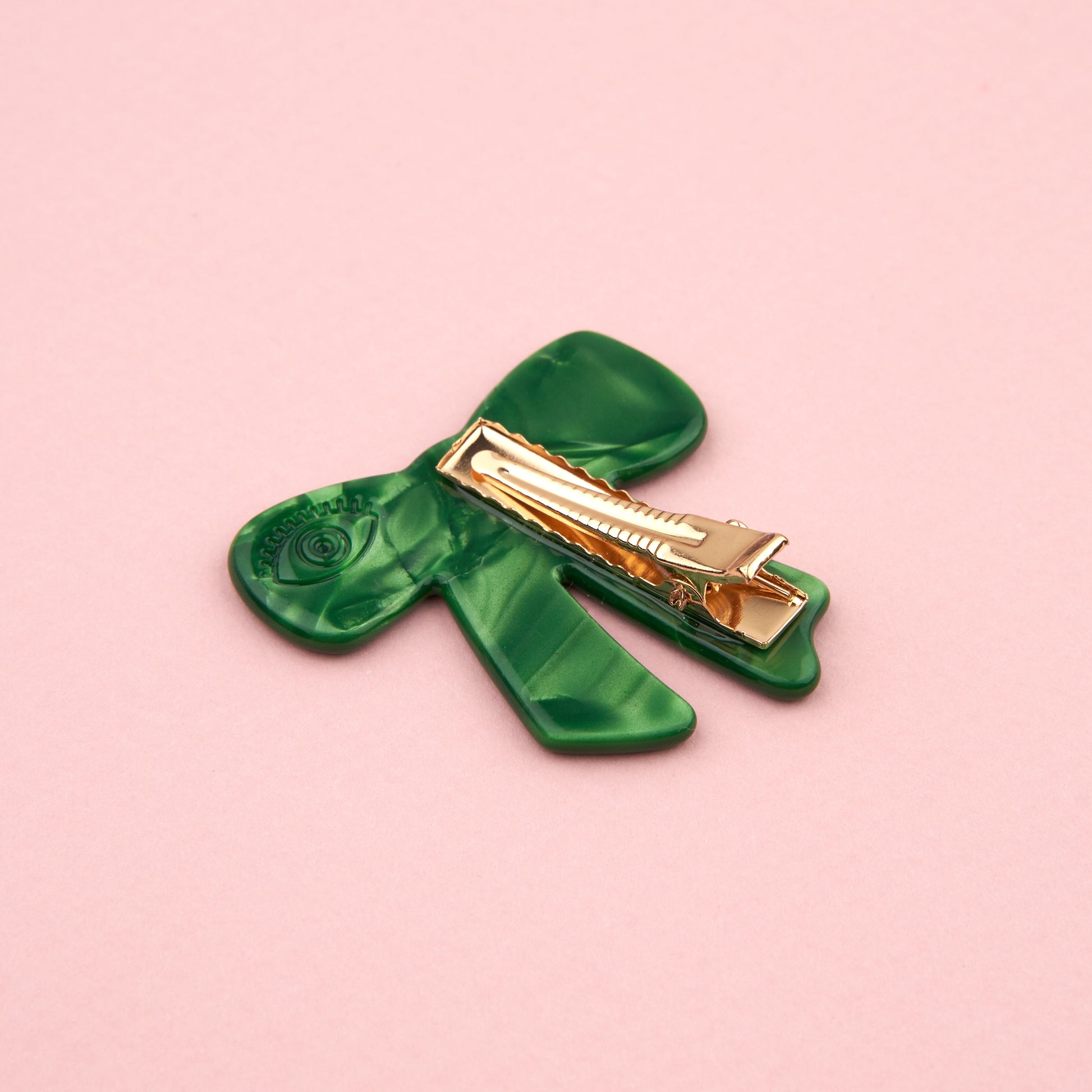 Een eenvoudige maar charmante barrette in de vorm van een prachtige dennengroene strik, perfect om losse plukjes op hun plek te houden dankzij de krokodillenclip. Wij dragen ze graag in paar, bijvoorbeeld gecombineerd met een rode vriend, voor een feestelijke kerstsfeer.