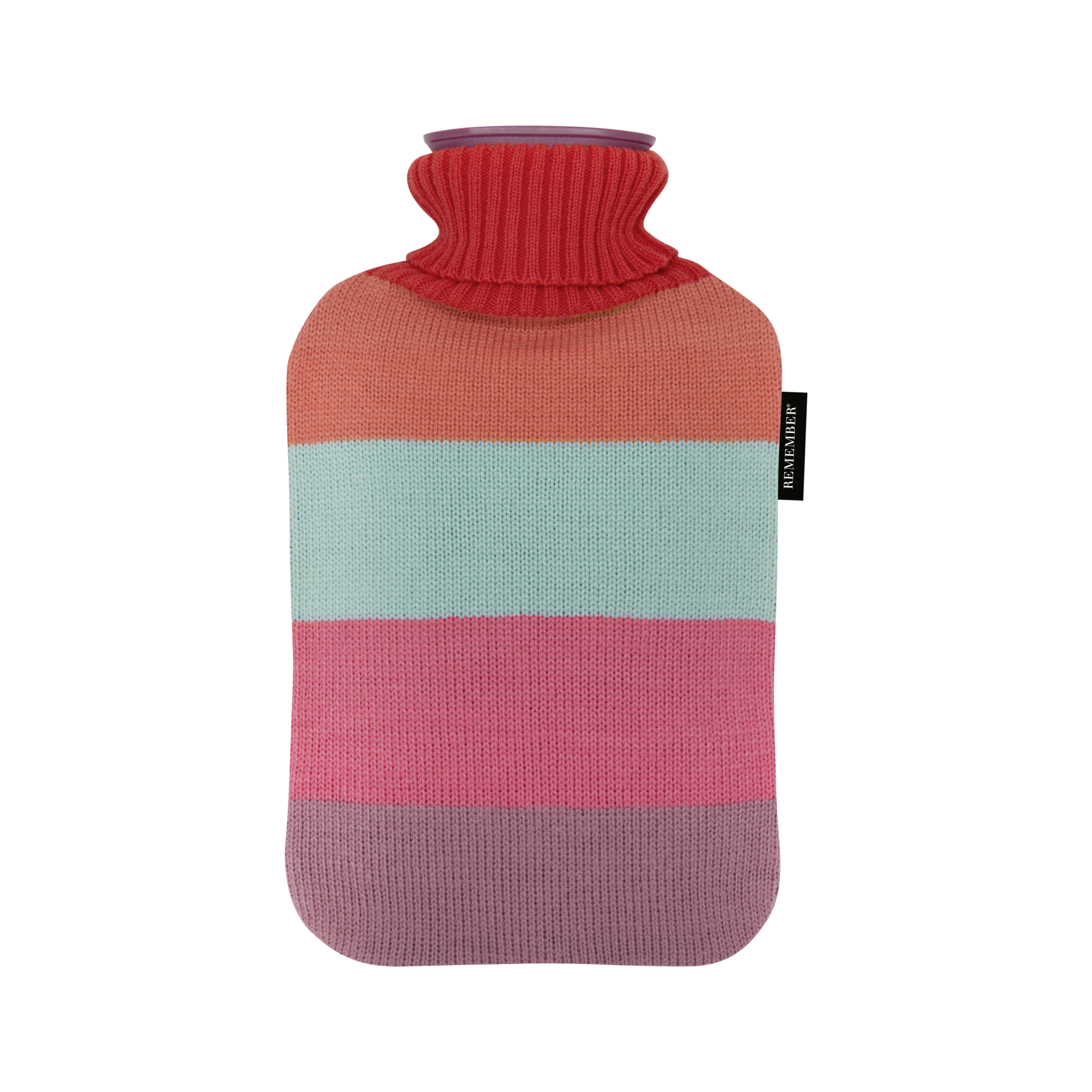 Als het buiten fris en koud is, is een warmwaterkruik op de bank of op bed erg knus. De warmwaterkruiken hebben een zachte, afneembare gebreide hoes in kleurrijke strepen en zien er daarom ook geweldig uit.