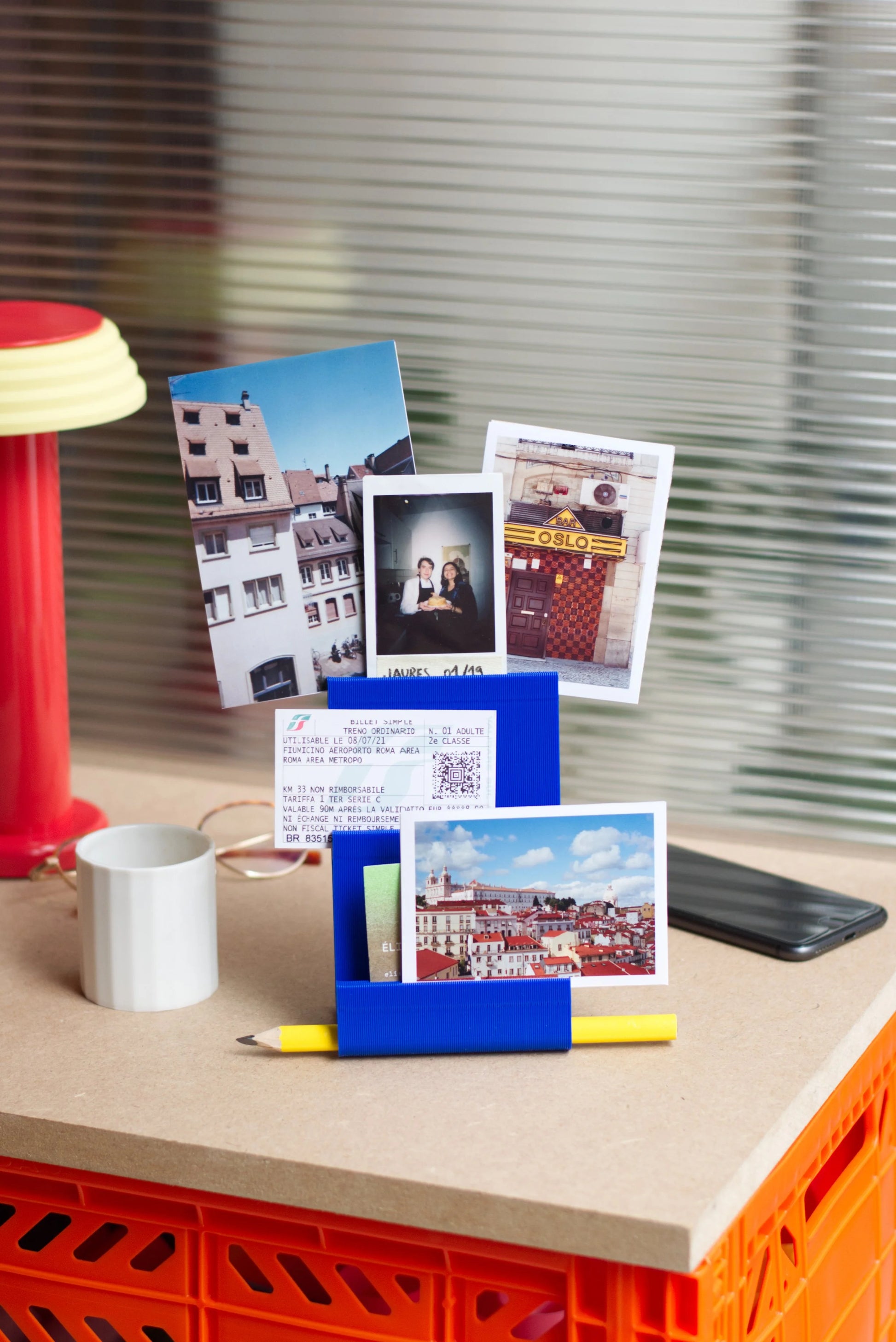 Joe is een perpetuele kalender die ook dienstdoet als kaarthouder of fotohouder. Hij wordt geleverd met een set van dag-, maand- en cijferkaarten, allemaal gedrukt op stevig karton.