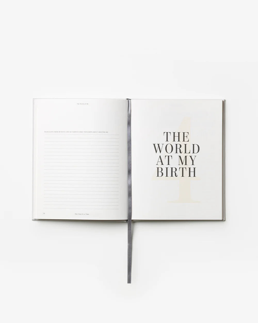 Ontdek "One Step at a Time: A Book About the First Time in My Life". Dit prachtige beige boek bevat 64 pagina's en zit in een roestgele hoes. Het is jouw speciale plek om die magische momenten van het eerste jaar van je baby vast te leggen. Van zwangerschap en geboorte tot die gedenkwaardige eerste woorden en stapjes, "One Step at a Time" is het perfecte boek om deze momenten vast te leggen en voor altijd te koesteren