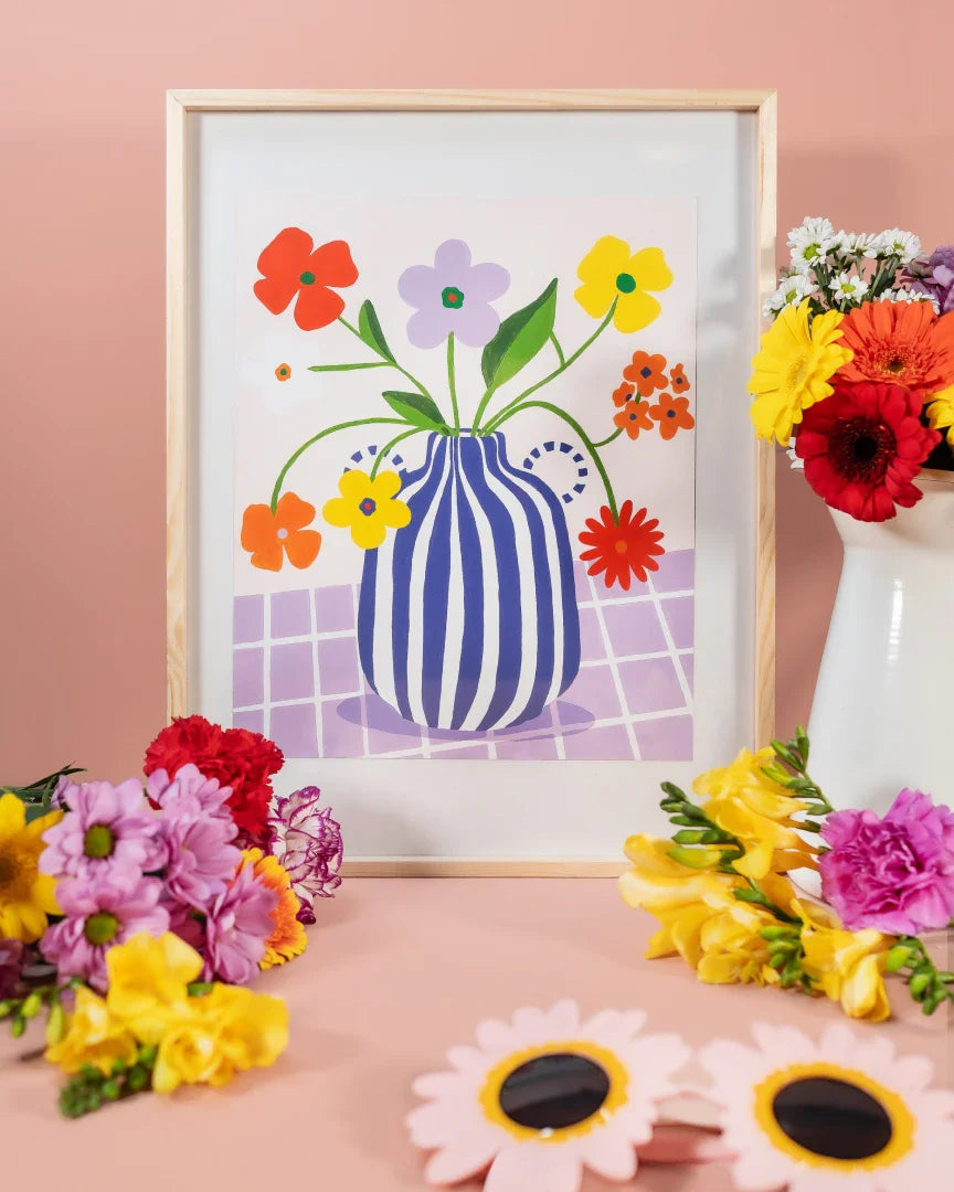 Kies je favoriete kleuren, volg de lijnen van de vaas en laat een prachtig bloemenboeket ontstaan dat zonneschijn en vrolijkheid in je huis brengt.