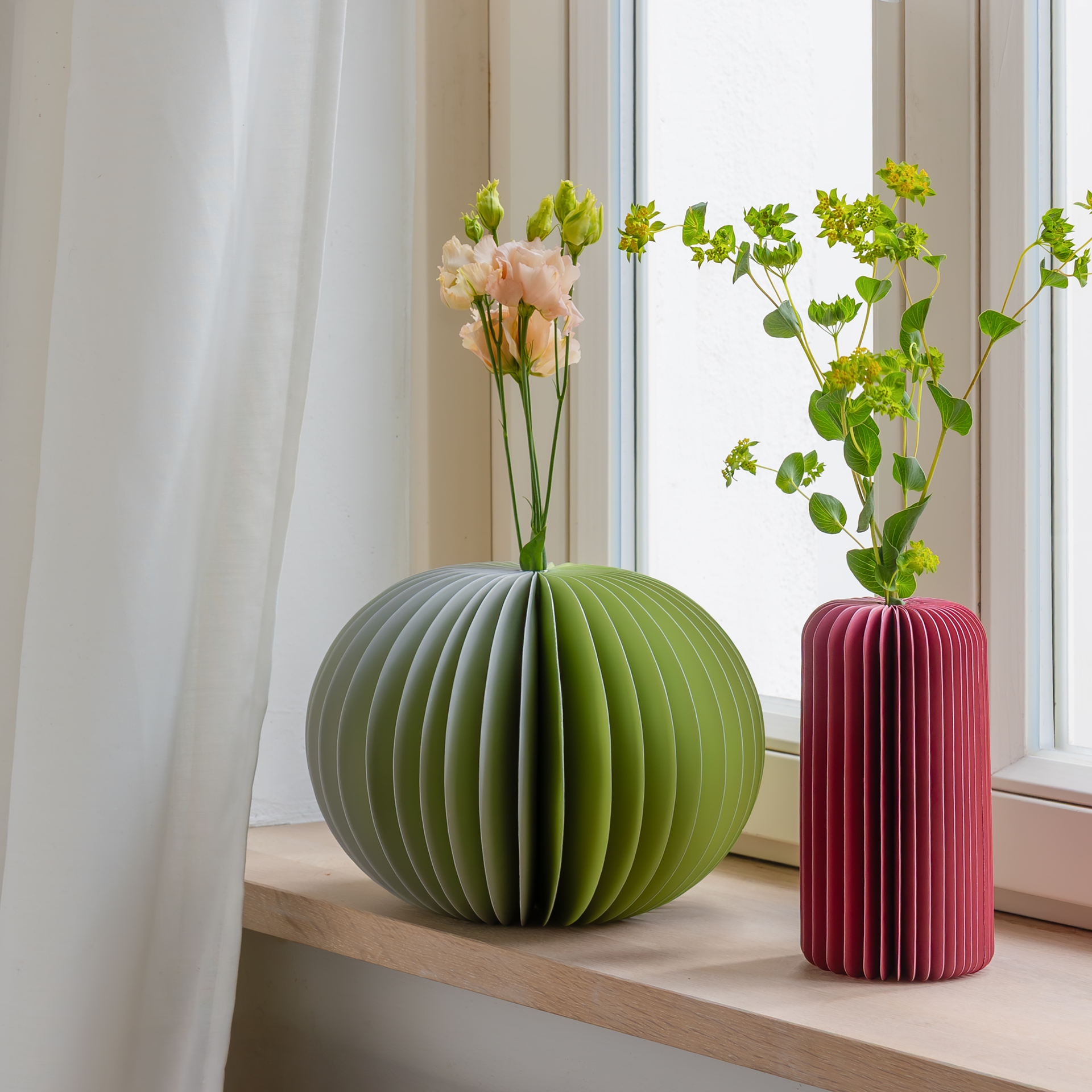 Gewoon uitvouwen, bloemen toevoegen – en je hebt meteen een echte decoratieve blikvanger. De tweekleurige vaas met glazen cilinder valt op door het mooie samenspel van kleuren en is dankzij de magnetische sluiting heel eenvoudig te vouwen en weer uit te vouwen.
