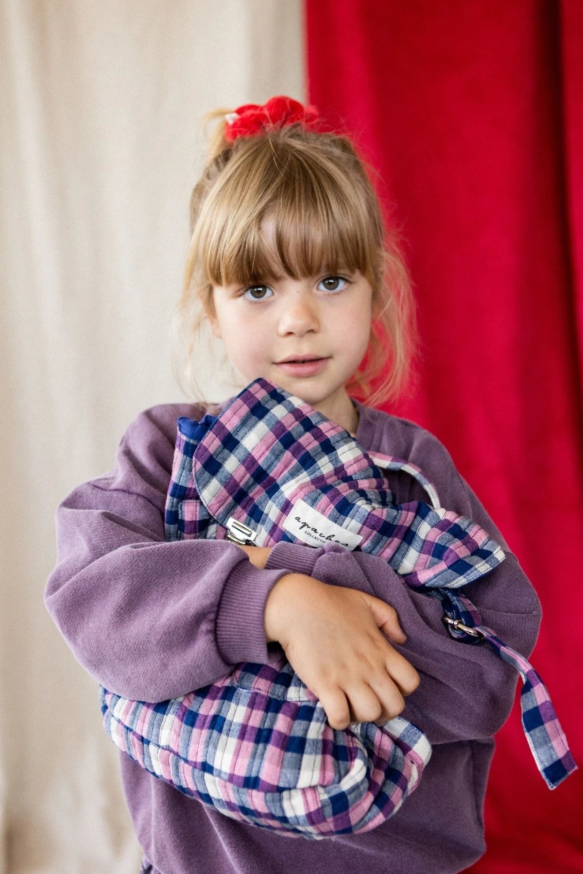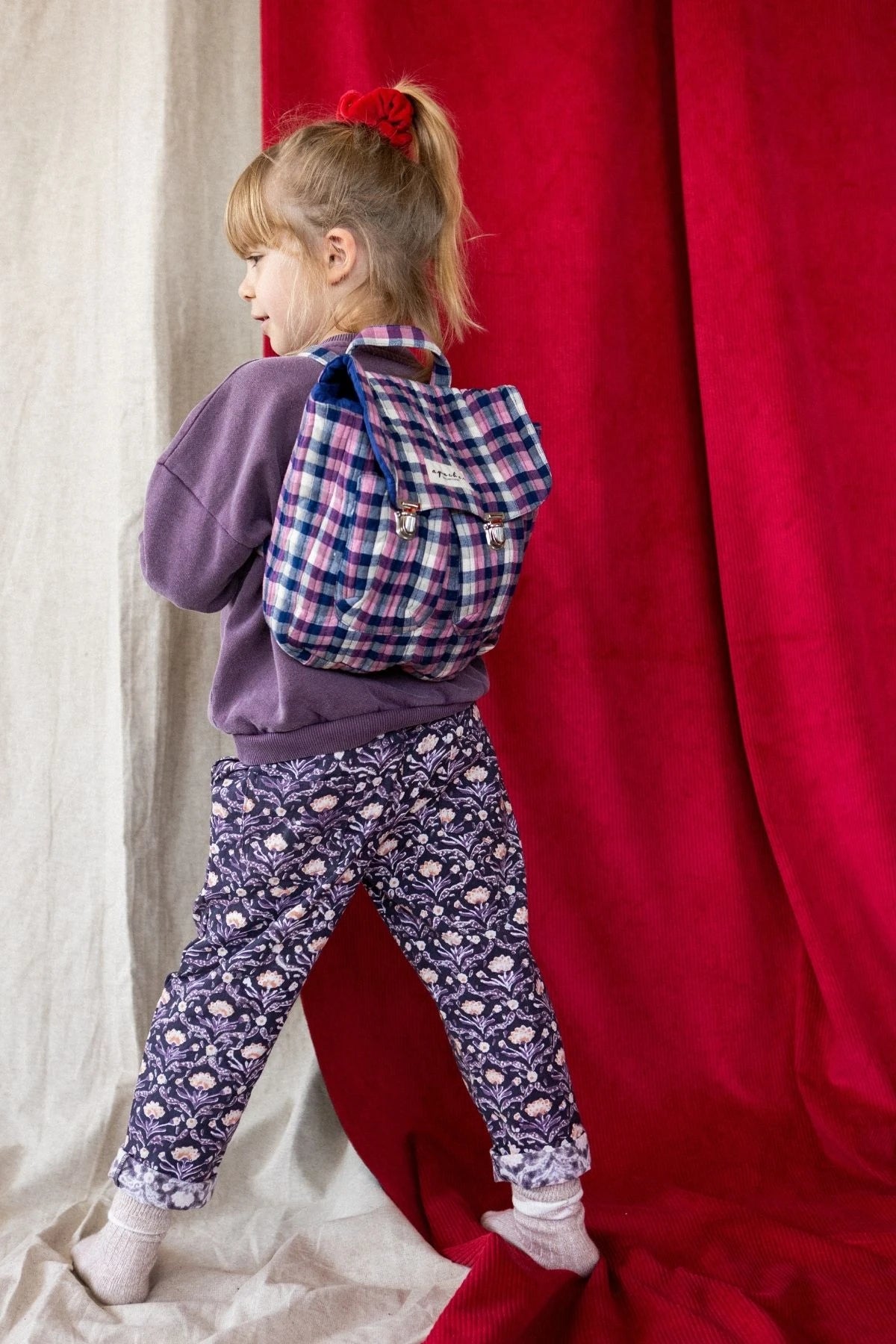 Ontdek de Suji rugzak Khadi in zacht roze, verfraaid met een multicolor ruitjesprint. Gemaakt van gewatteerd katoen voor extra comfort, met verstelbare schouderbanden en stevige clipsluiting. Een frisse mix van stijl en functionaliteit – de perfecte rugzak om je dagelijks te vergezellen met gemak en elegantie.