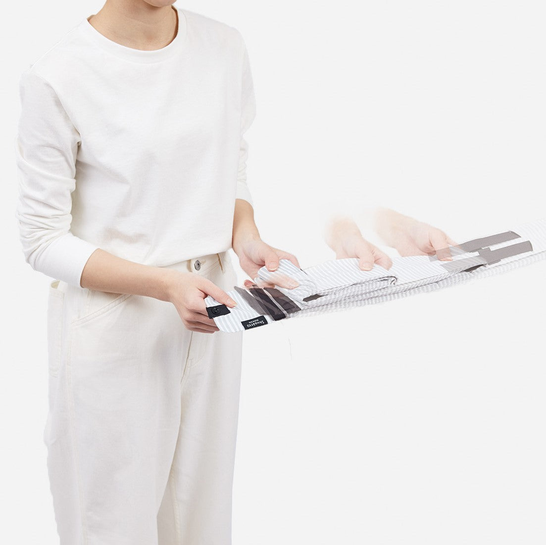 Zelfs het opvouwen voelt goed. Klaar? Trek beide uiteinden van de opening zijwaarts en ervaar hoe de tas soepel dichtklapt. Snel, eenvoudig en verrassend bevredigend. Hoe vaker je hem gebruikt, hoe meer je het slimme gemak waardeert.