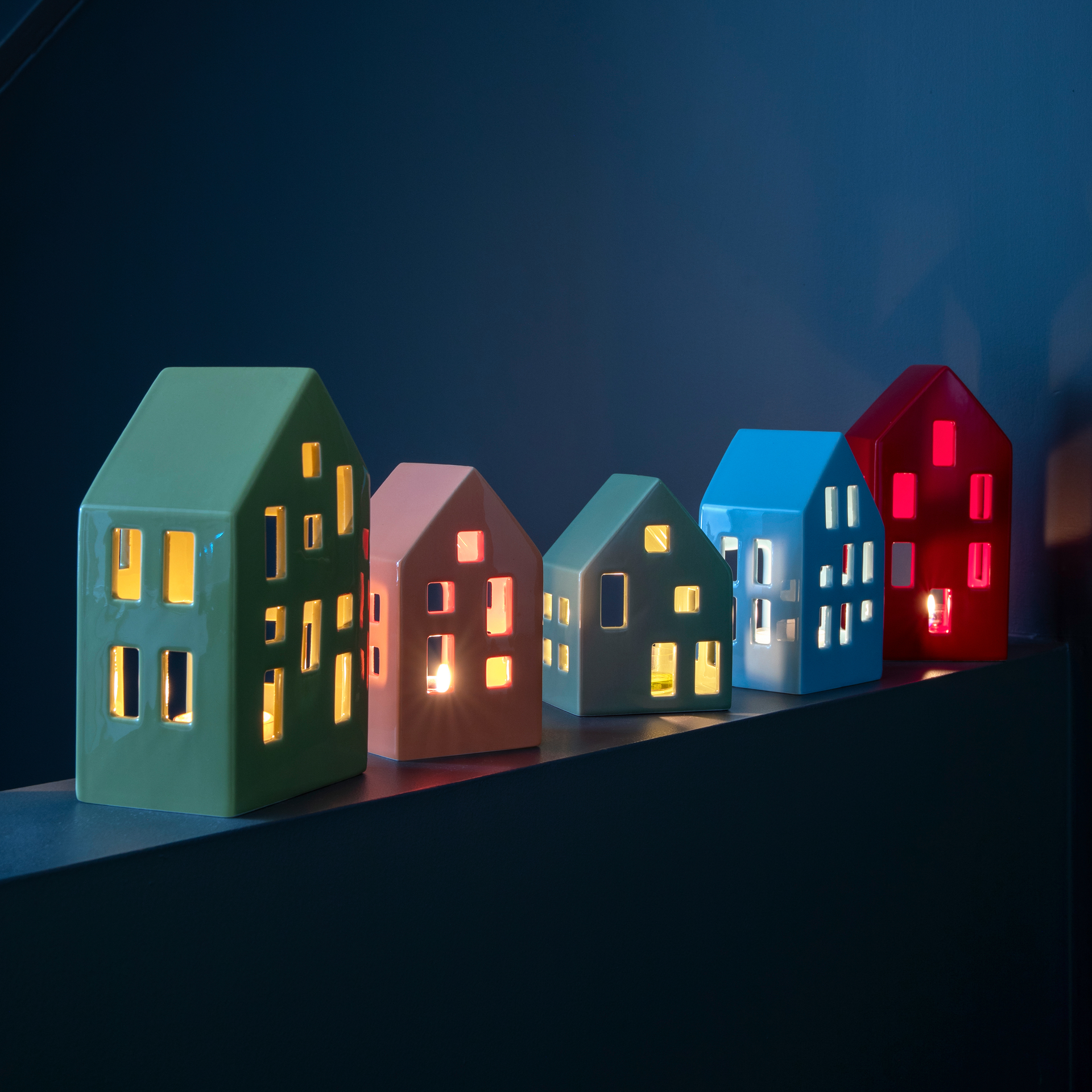 Wat straalt de gezelligheid uit door de kleine raampjes! De charmante theelichthuisjes zorgen voor een heerlijke sfeer in het donkere seizoen en kunnen afzonderlijk of als een klein dorpje worden neergezet.