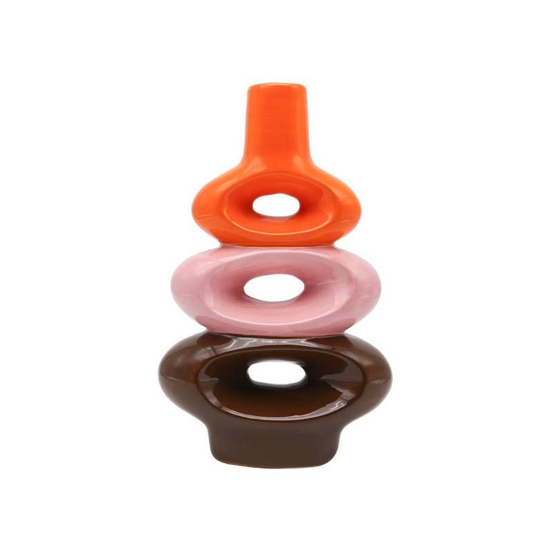 Deze Belgisch ontworpen vaas is geïnspireerd op de levendige Spaanse levensstijl en voorzien van het kleurrijke Amor del Color-patroon. Met zijn speelse gestapelde vorm en gedurfde kleurencombinatie van oranje, roze en diepbruin is deze handgemaakte vaas een echte blikvanger in elk interieur. Omdat hij met de hand beschilderd is, is elk stuk uniek! Wordt geleverd in geschenkverpakking.