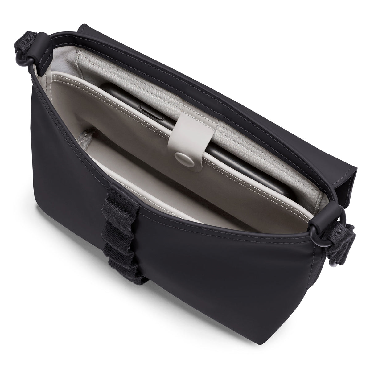 De Yuri Bag is een coole en veilige metgezel voor dag en nacht. Het hoofdvak sluit met een flap en aluminium G-buckle en binnenin vind je twee extra vakken voor je essentials. Aan de achterkant is een snel toegankelijk vak voor je smartphone. Dankzij de verstelbare schouderriem (30–60 cm) draag je de tas comfortabel over je schouder, als crossbody of gewoon in de hand.